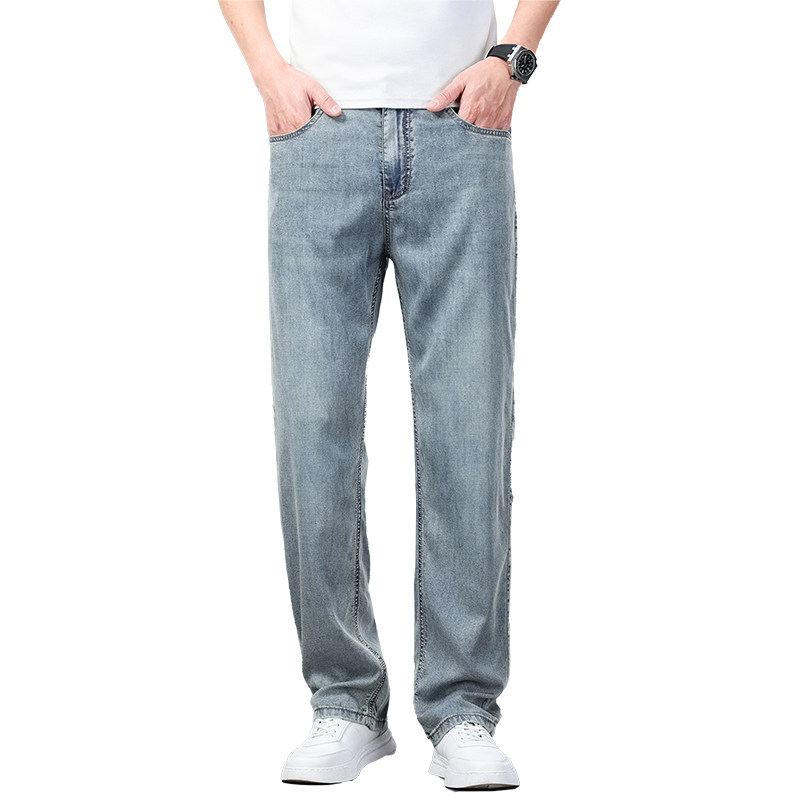 皮尔卡丹超薄牛仔裤男2025夏季新款宽松直筒复古蓝高腰休闲长裤子