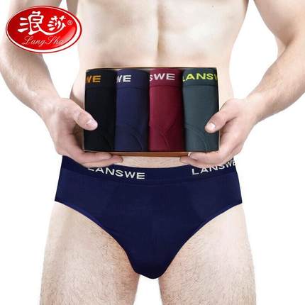 4条 浪莎男士内裤三角裤冰丝竹纤维中腰大码透气内裤男三角短裤头
