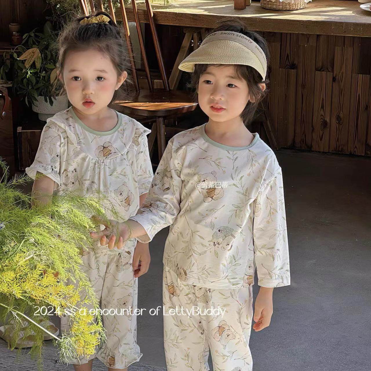 天丝兰精莫代尔儿童睡衣家居服九分袖九分裤套装薄款宝宝吸湿排汗