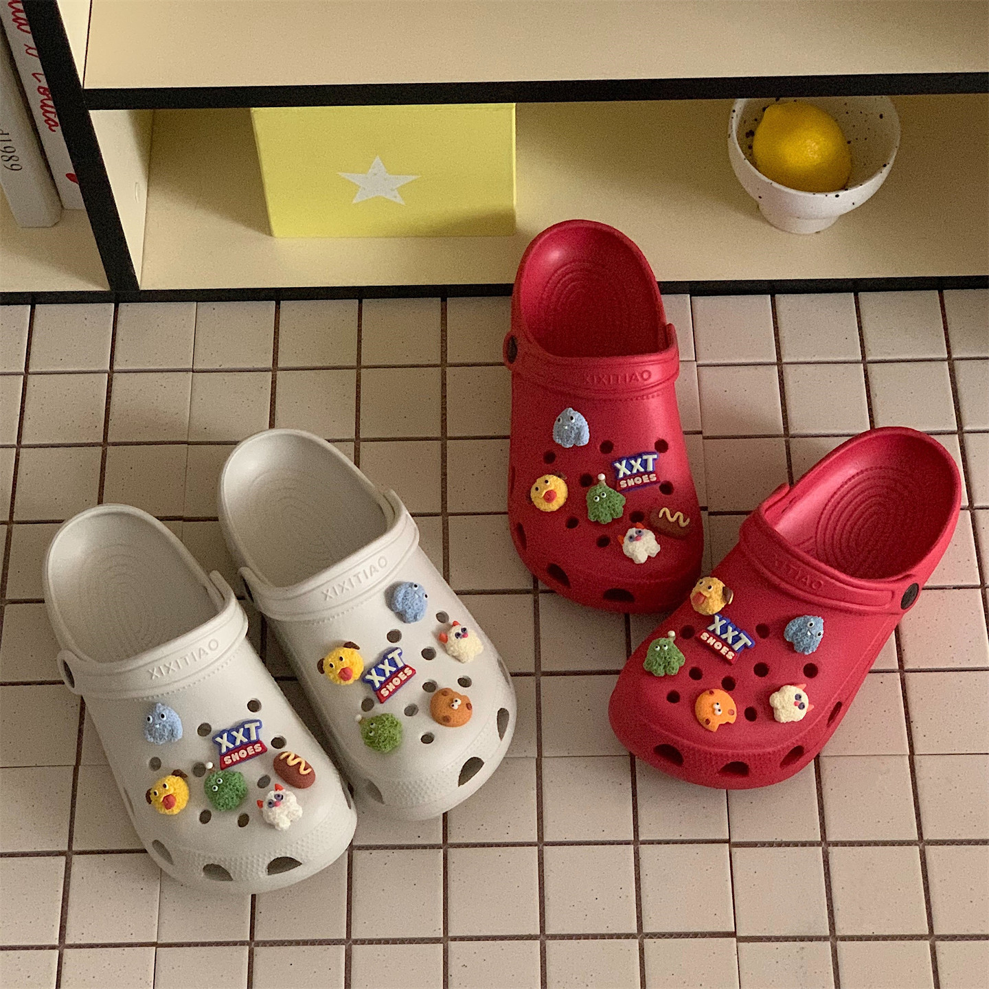 细细条 本命年防滑亲子洞洞鞋夏男女儿童沙滩趣味小怪兽红色凉拖