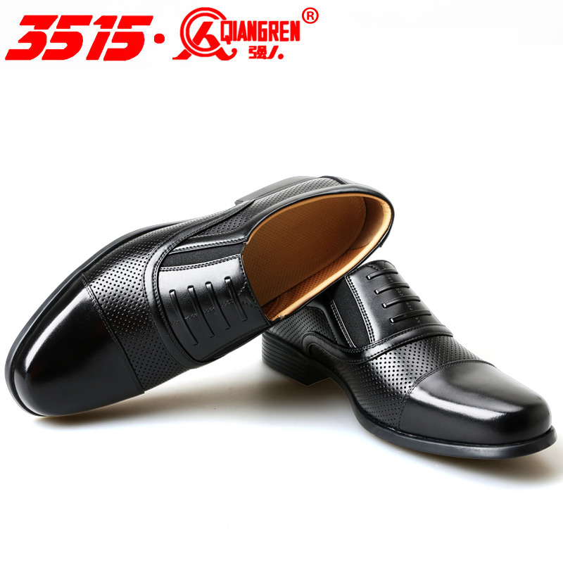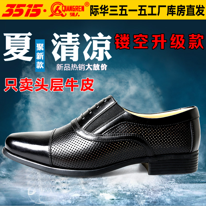3515强人夏季男鞋三接头皮鞋男透气镂空商务正装皮凉鞋真皮皮鞋子