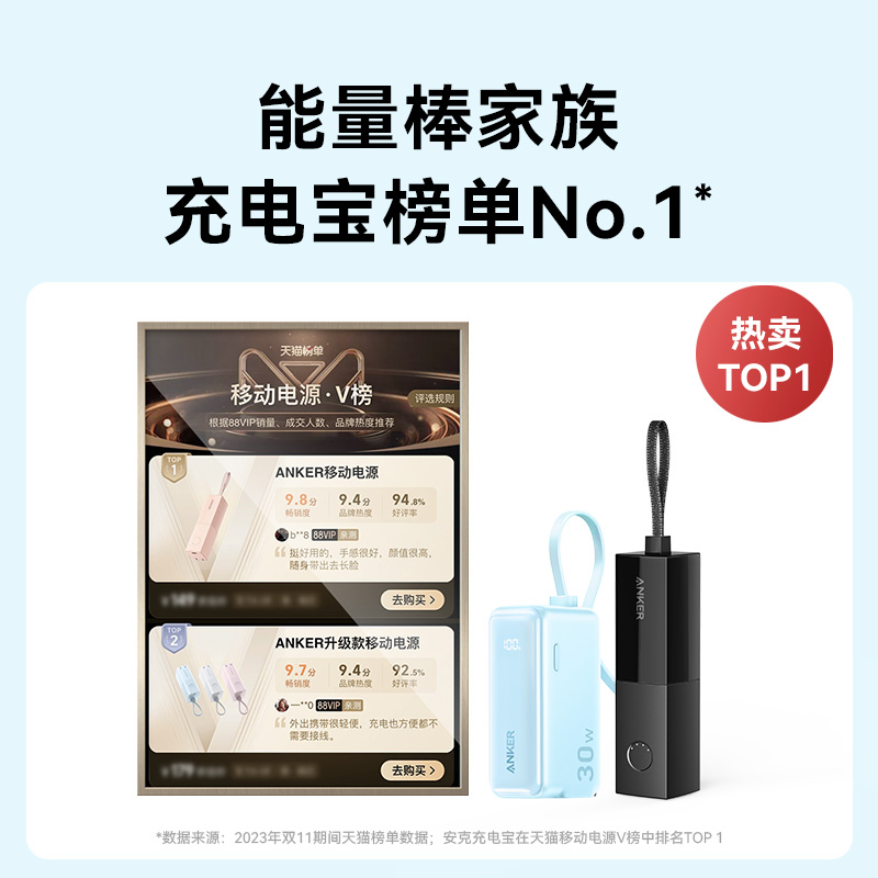【3C认证可上飞机 】Anker安克充电宝三合一能量棒充电器小巧便携插头新款大容量迷你移动电源适用苹果安卓
