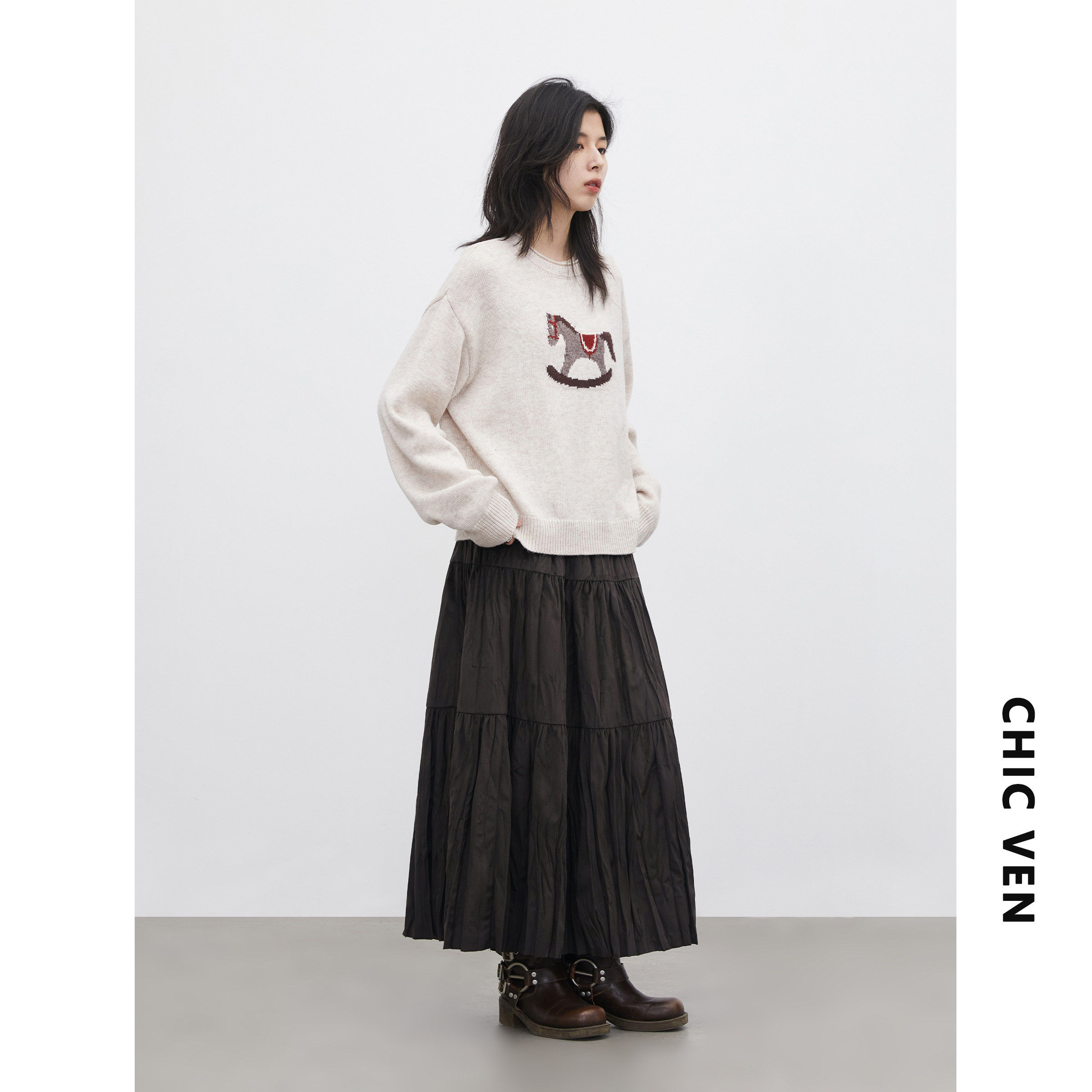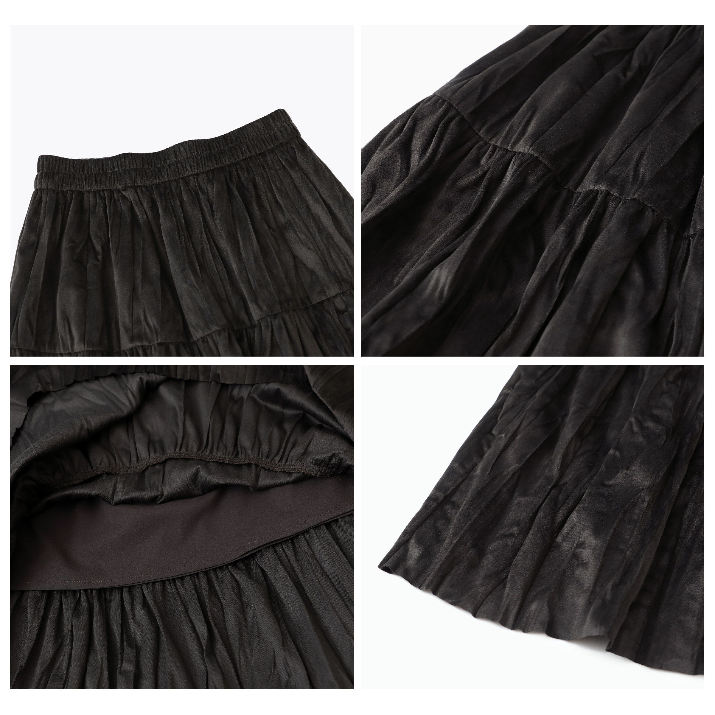 CV大码女装春新款松紧腰丽丝绒褶皱半身裙显瘦A版大裙摆长裙胖mm