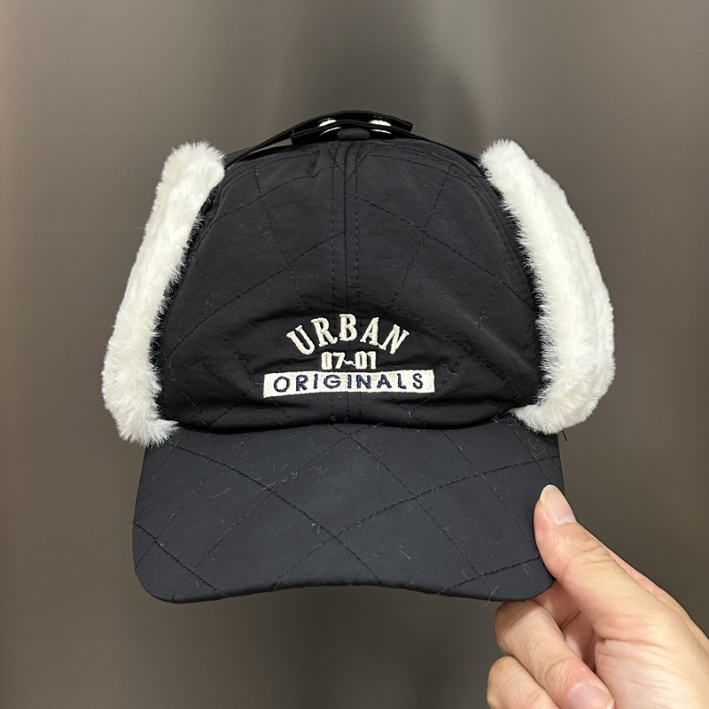 时尚复古毛绒保暖护耳刺绣鸭舌帽女秋冬季韩版个性工装棒球帽男潮