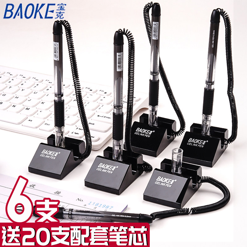 宝克台笔带线办公签字笔带绳中性笔前台固定笔座粘在桌子上的笔电