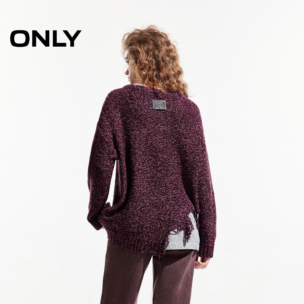 ONLY宽松落肩拼接毛衣针织衫