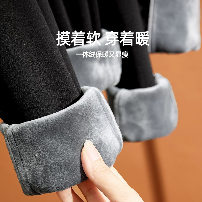 逸阳玻尿酸黑色打底裤女冬外穿加绒保暖高腰弹力铅笔小脚黑魔术裤