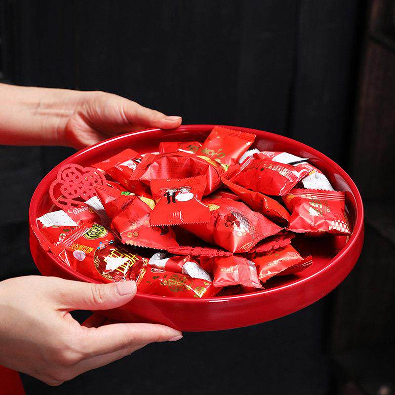 结婚托盘糖果盘茶盘龙凤陶瓷干果盘茶壶新娘红色敬茶婚庆用品大全