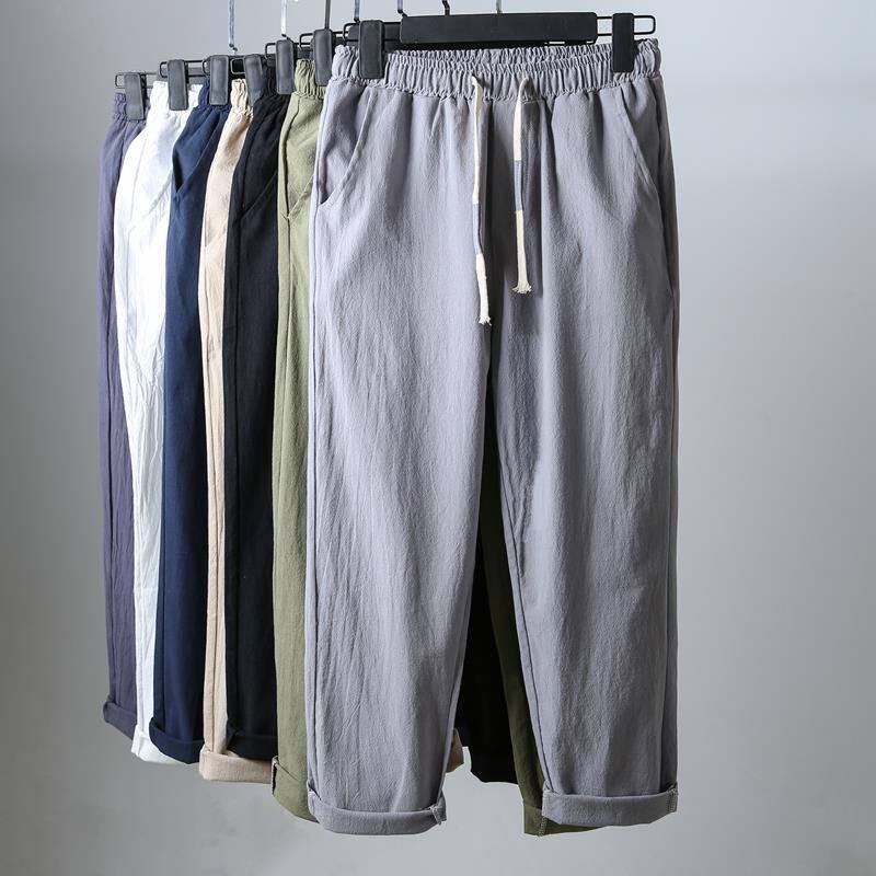 男士夏季亚麻九分裤男裤子休闲裤男士薄款宽松9分8八分棉麻男裤潮