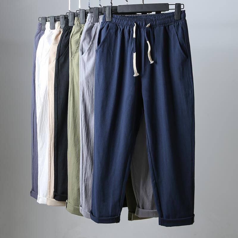棉麻九分裤男裤子休闲裤