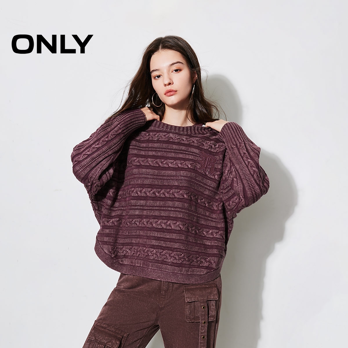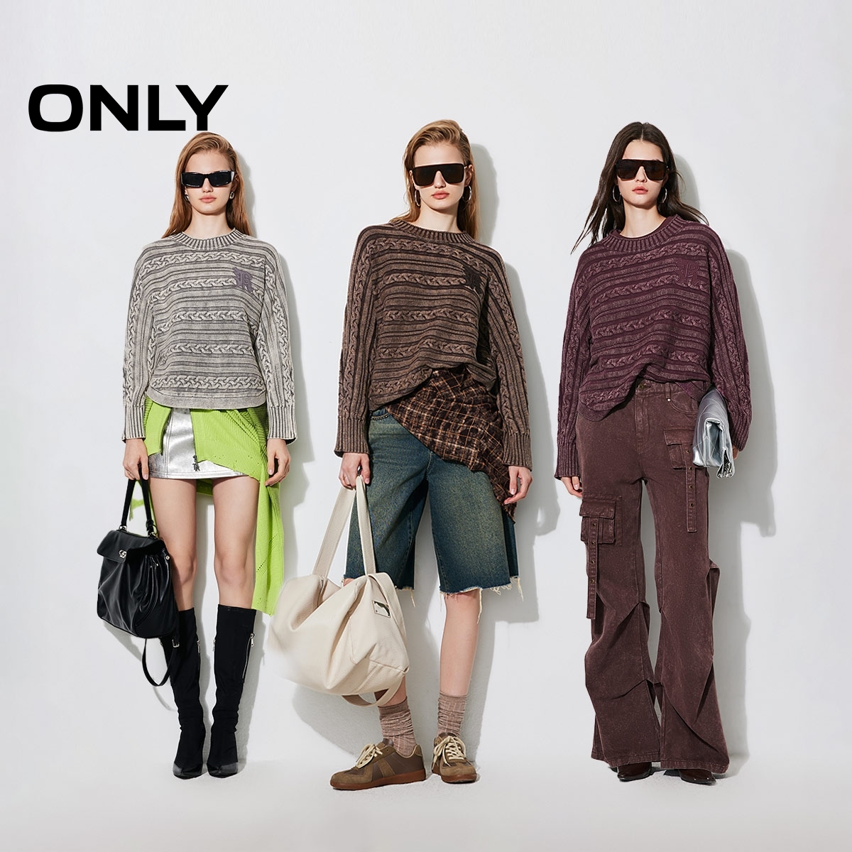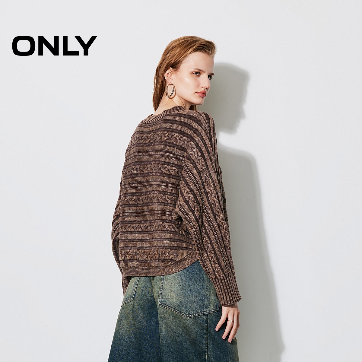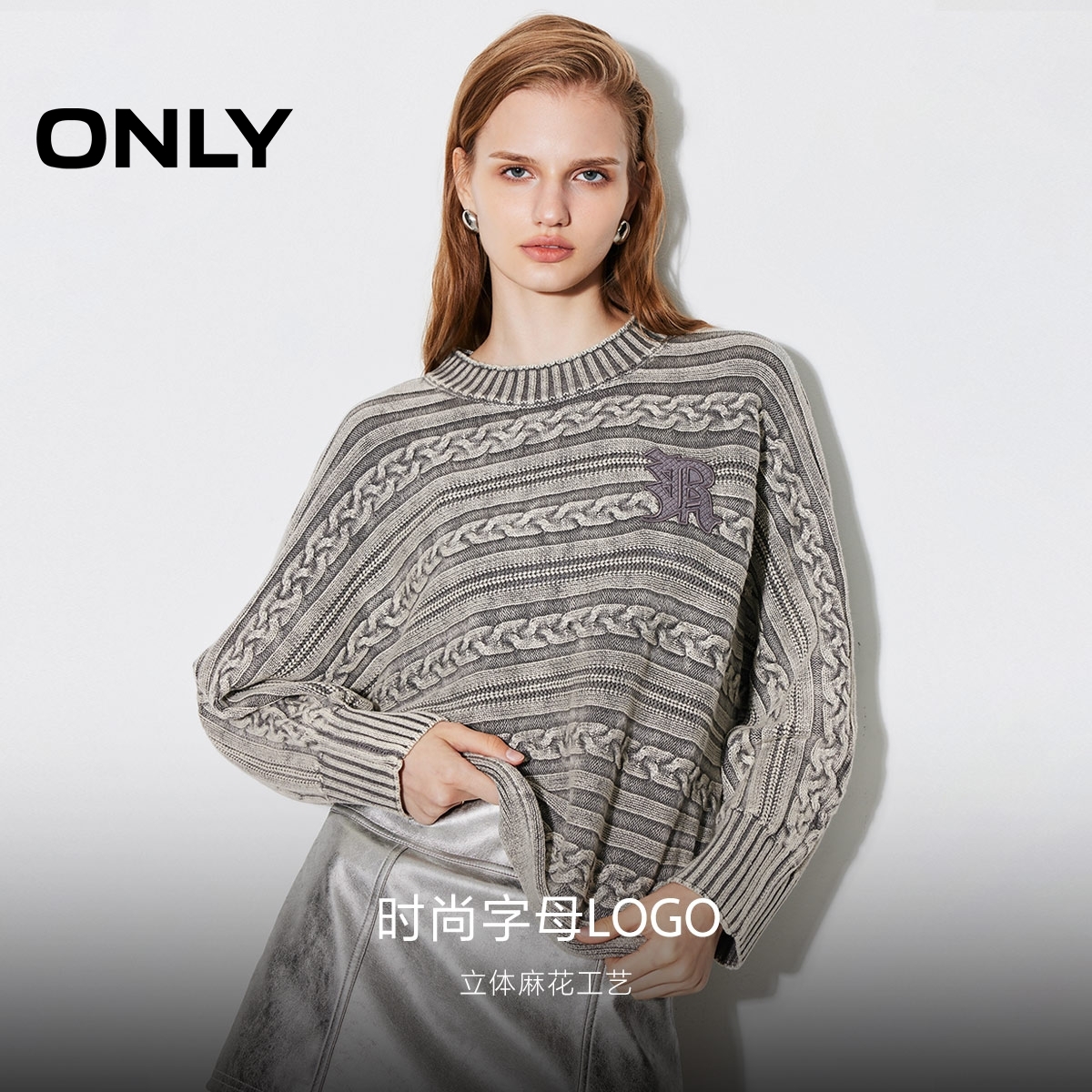 【ONLY奥莱】秋季复古水洗宽松显瘦圆领长袖针织衫女