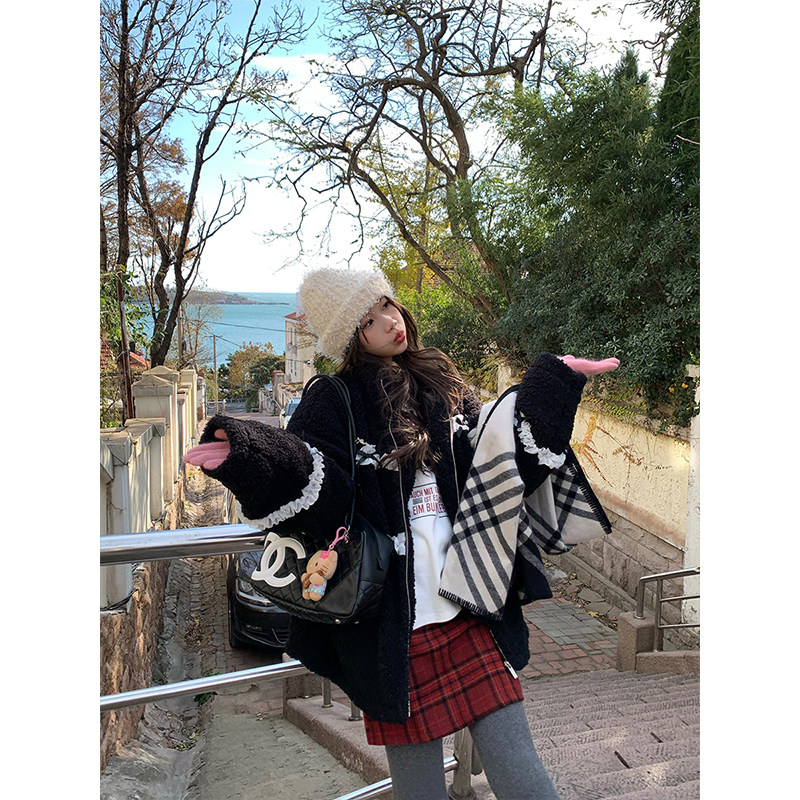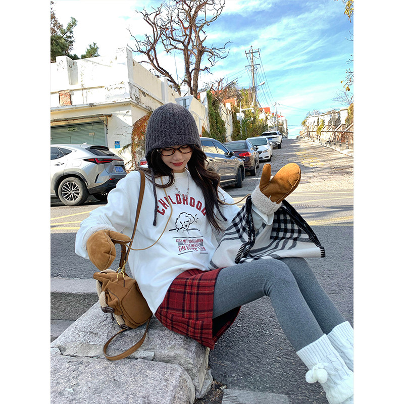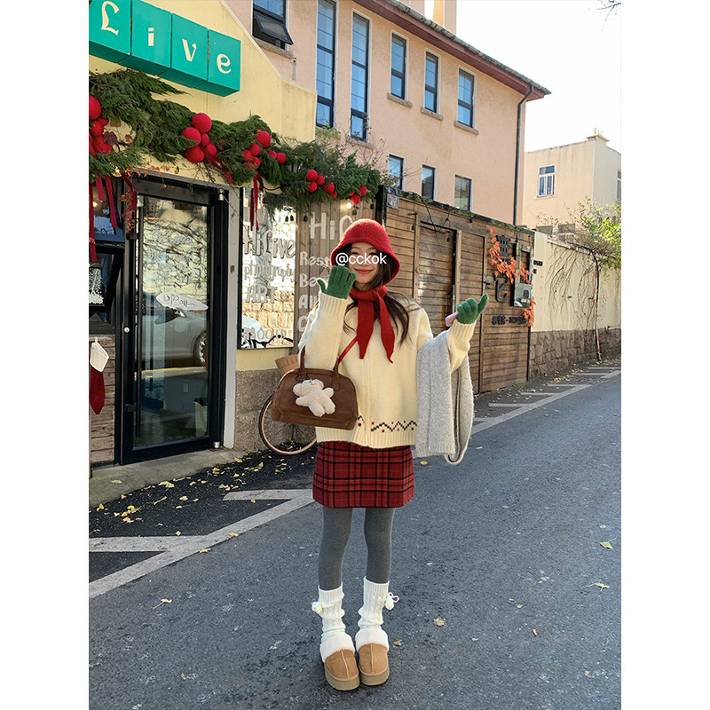 【现货】CCKOK圣诞红格纹毛呢短裙冬季a字包臀复古学院港风半身裙
