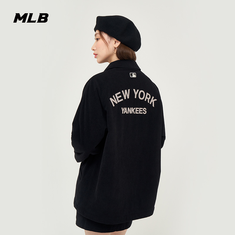 MLB官方 男女情侣学院风撞色logo灯芯绒衬衫外套24秋冬WSV01