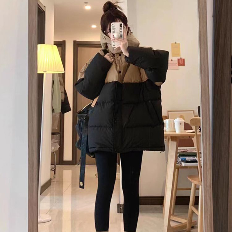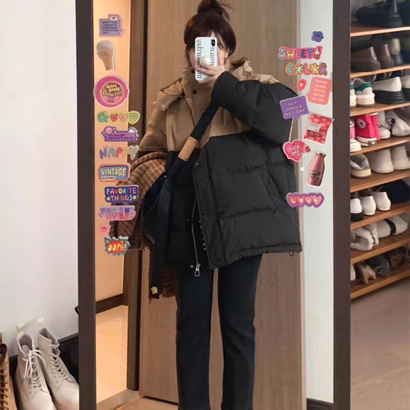 300斤大码胖mm复古拼接羽绒棉服女2025新款韩版加厚面包服外套女