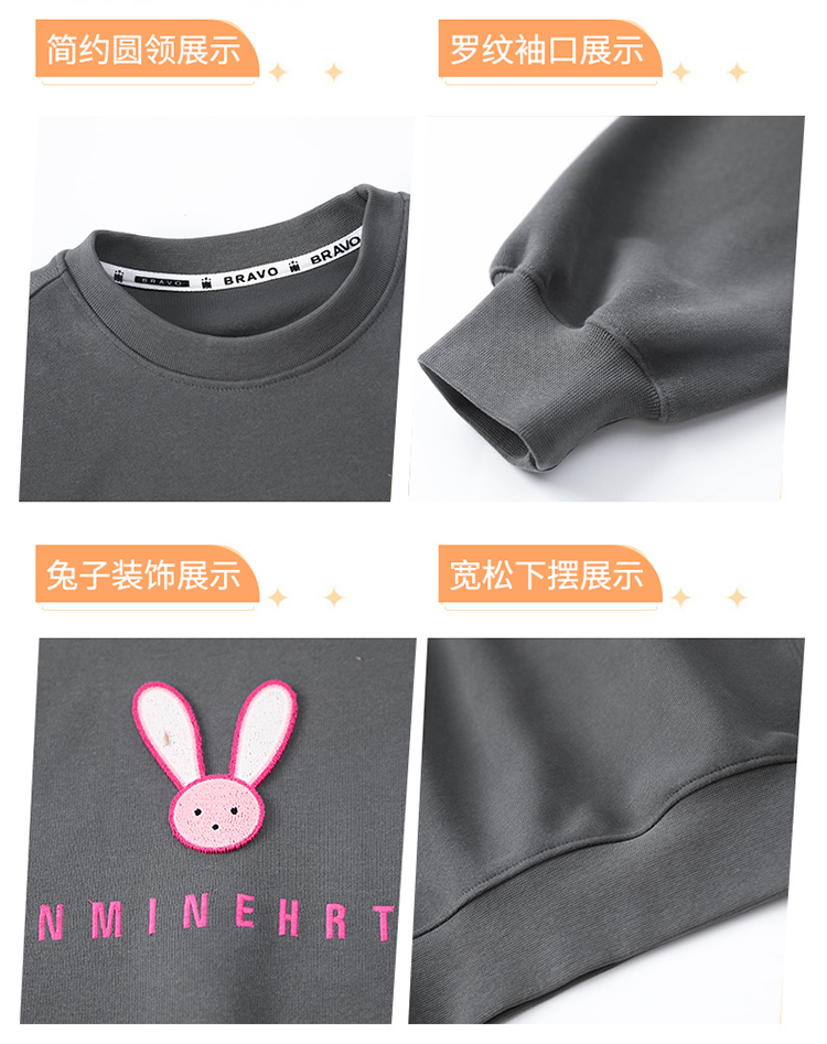 胖女童卫衣秋装2023新款儿童加肥加大码偏胖女孩圆领兔子长袖上衣