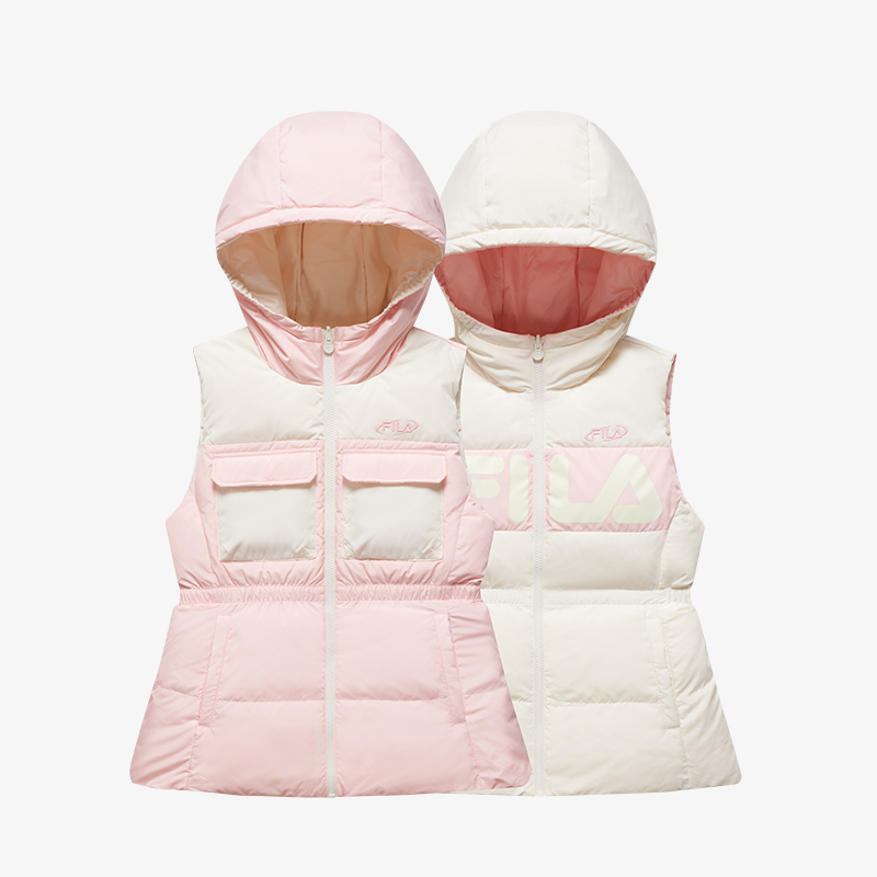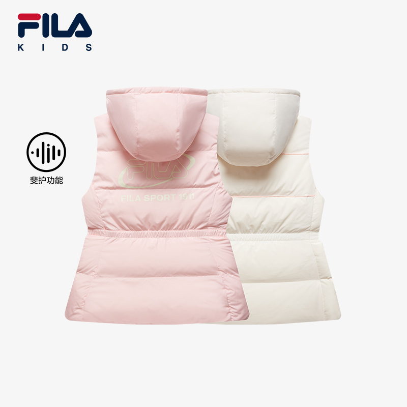 【斐护科技】FILA斐乐儿童羽绒马甲2024冬新款女中大童外套双面穿