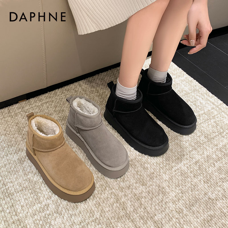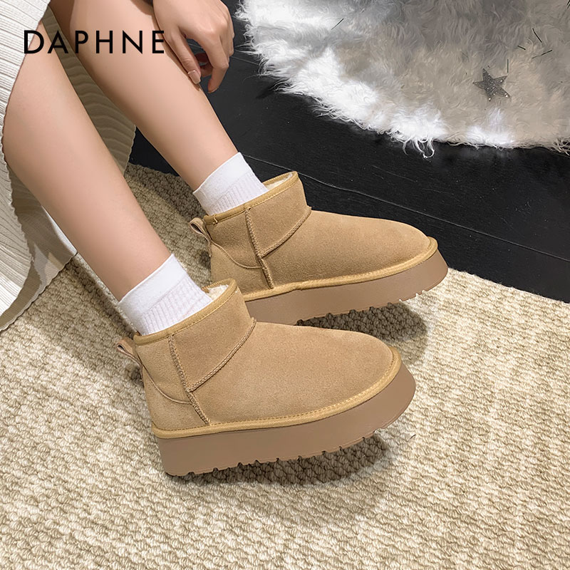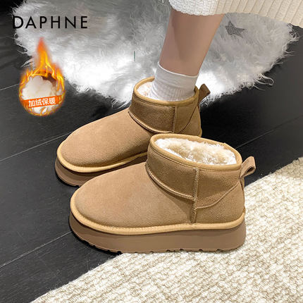 达芙妮厚底雪地靴女2025新款冬季加绒面包鞋短靴增高保暖东北棉鞋