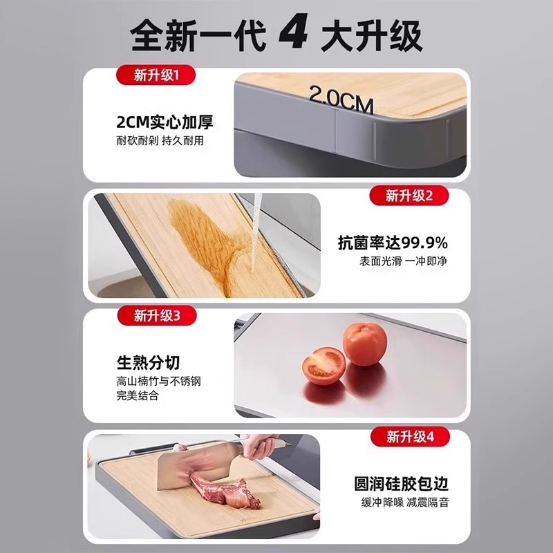 好管家菜板防霉抗菌家用整竹切菜板厨房案板不锈钢砧板水果专用板