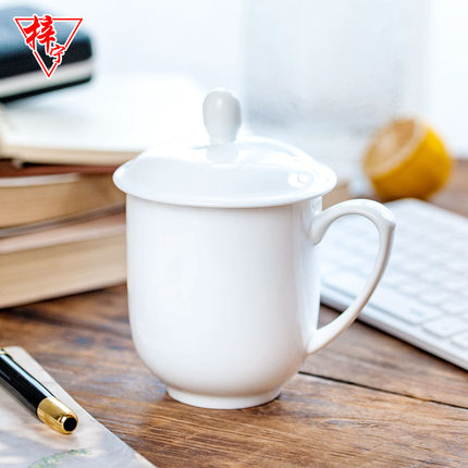 纯白骨瓷茶水杯家用办公杯陶瓷带盖老板杯大容量定制喝水盖杯茶杯