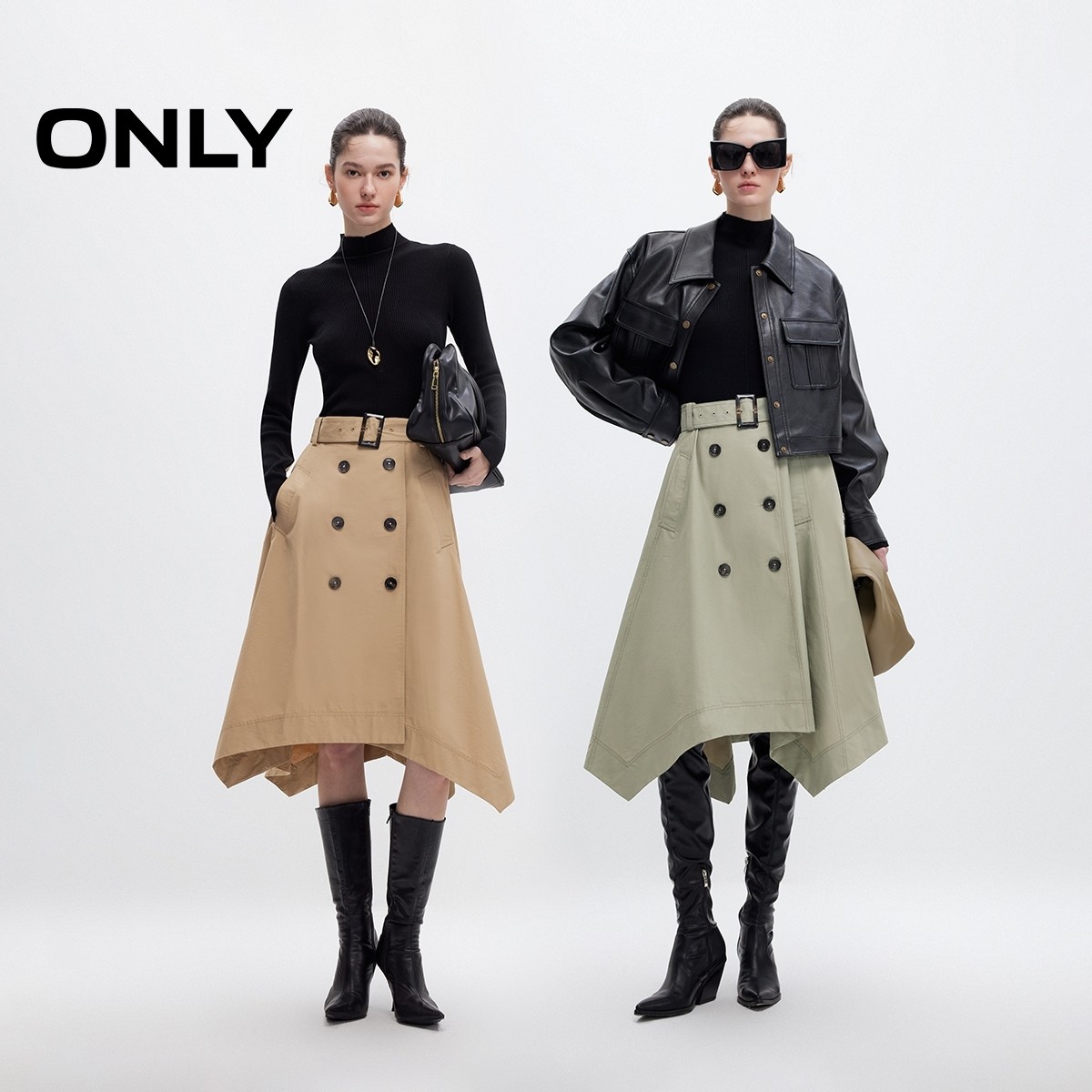 ONLY针织长袖套装中长裙连衣裙