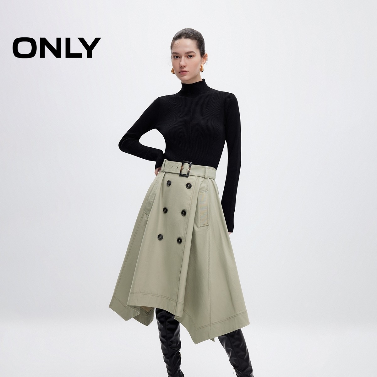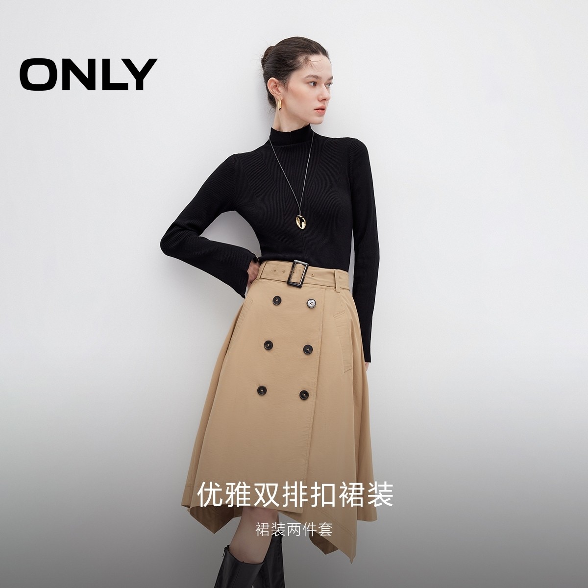 【ONLY奥莱】秋冬设计感针织长袖套装中长裙连衣裙女