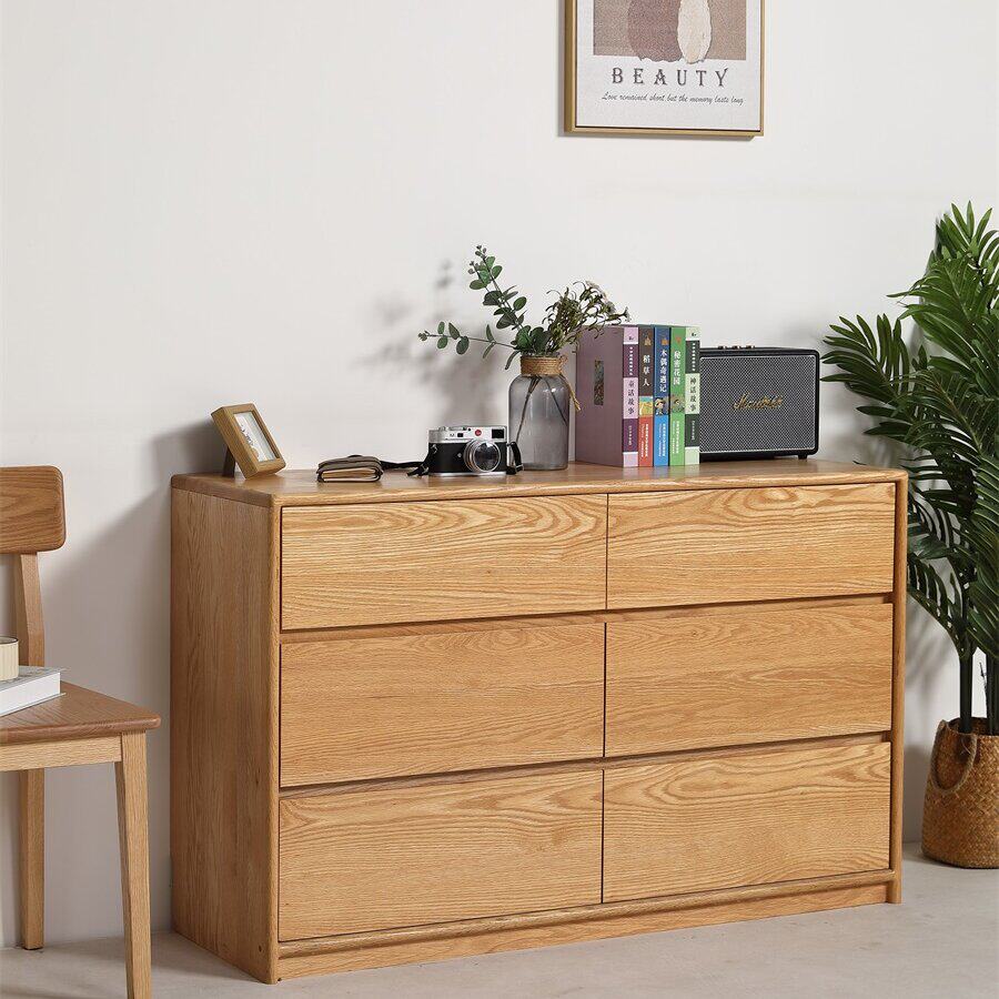 纯实木橡木卧室斗柜梳妆台电脑桌一体L型转角化妆台日式原木化妆