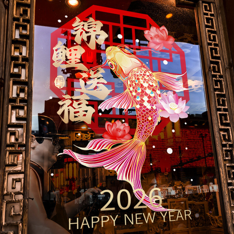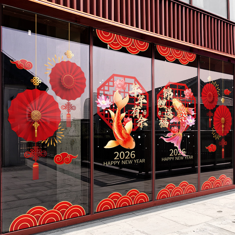 新年装饰锦鲤窗花2026马年春节窗贴过年店铺橱窗静电玻璃贴门贴纸
