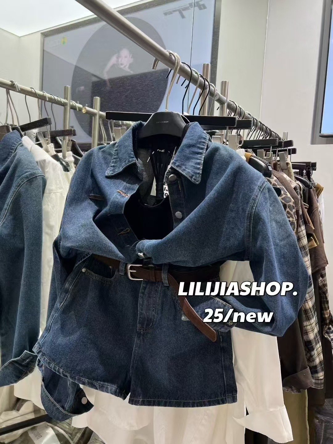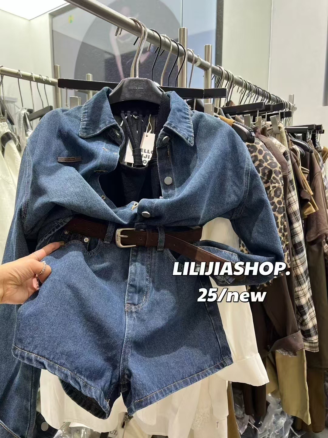 MIDO家 韩版百搭显瘦连体牛仔短裤女2025秋时尚翻领牛仔衬衫套装