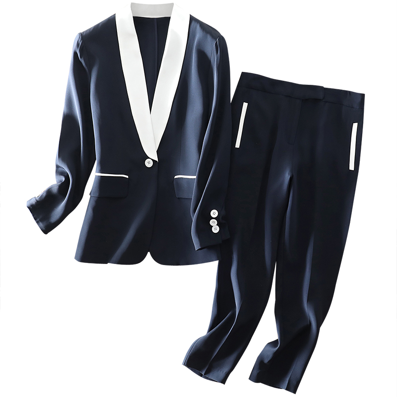 特#高端30姆米重磅真丝职业通勤夏季西装套装正装修身西服9分西裤