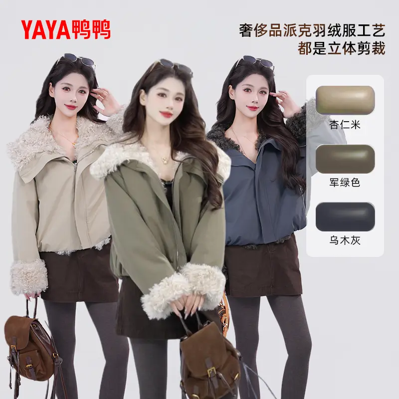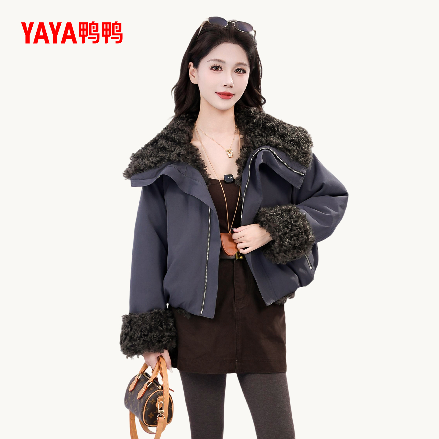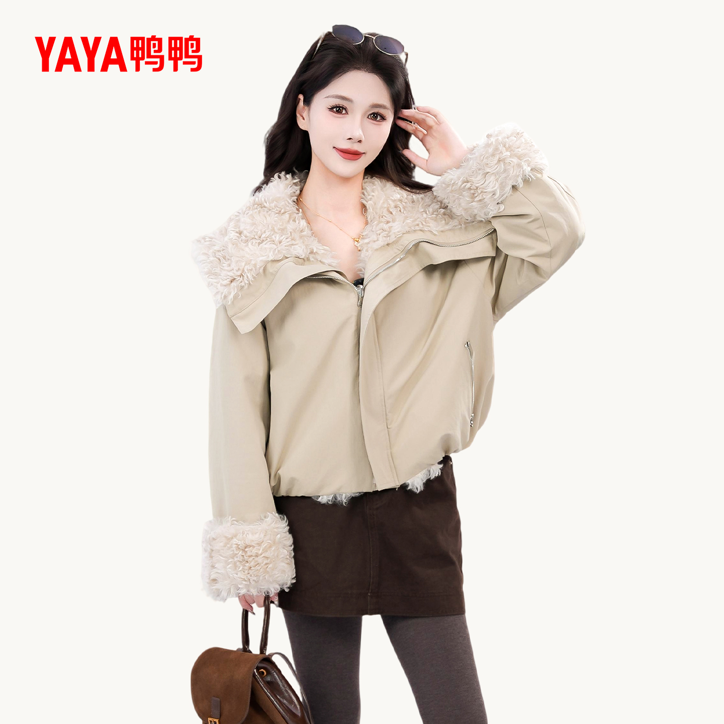 YAYA鸭鸭2025冬季新款羽绒服女羊卷毛毛领气质设计感休闲派克外套