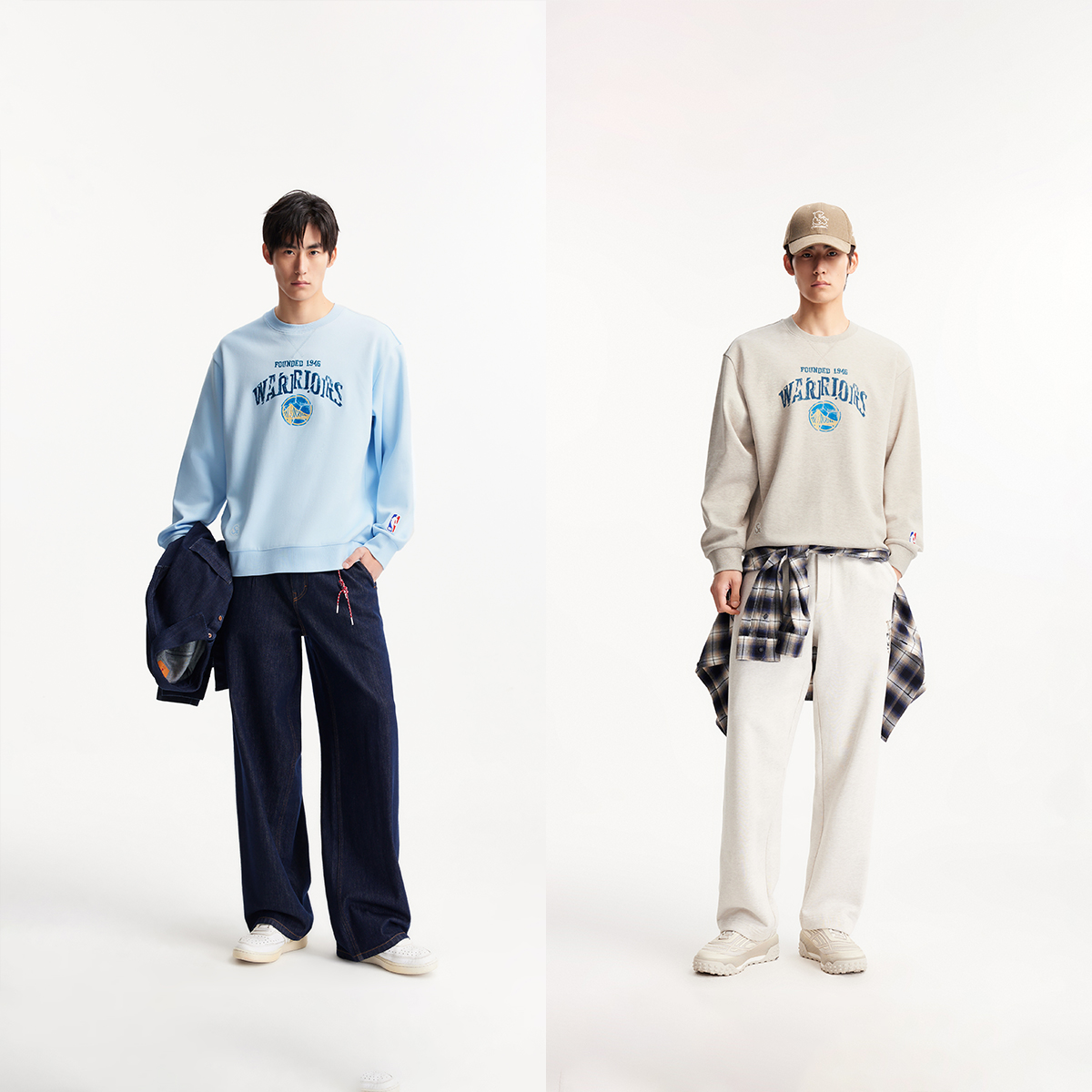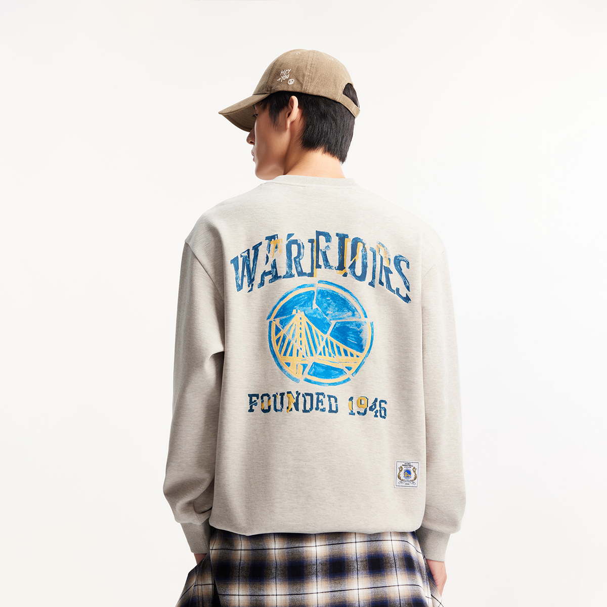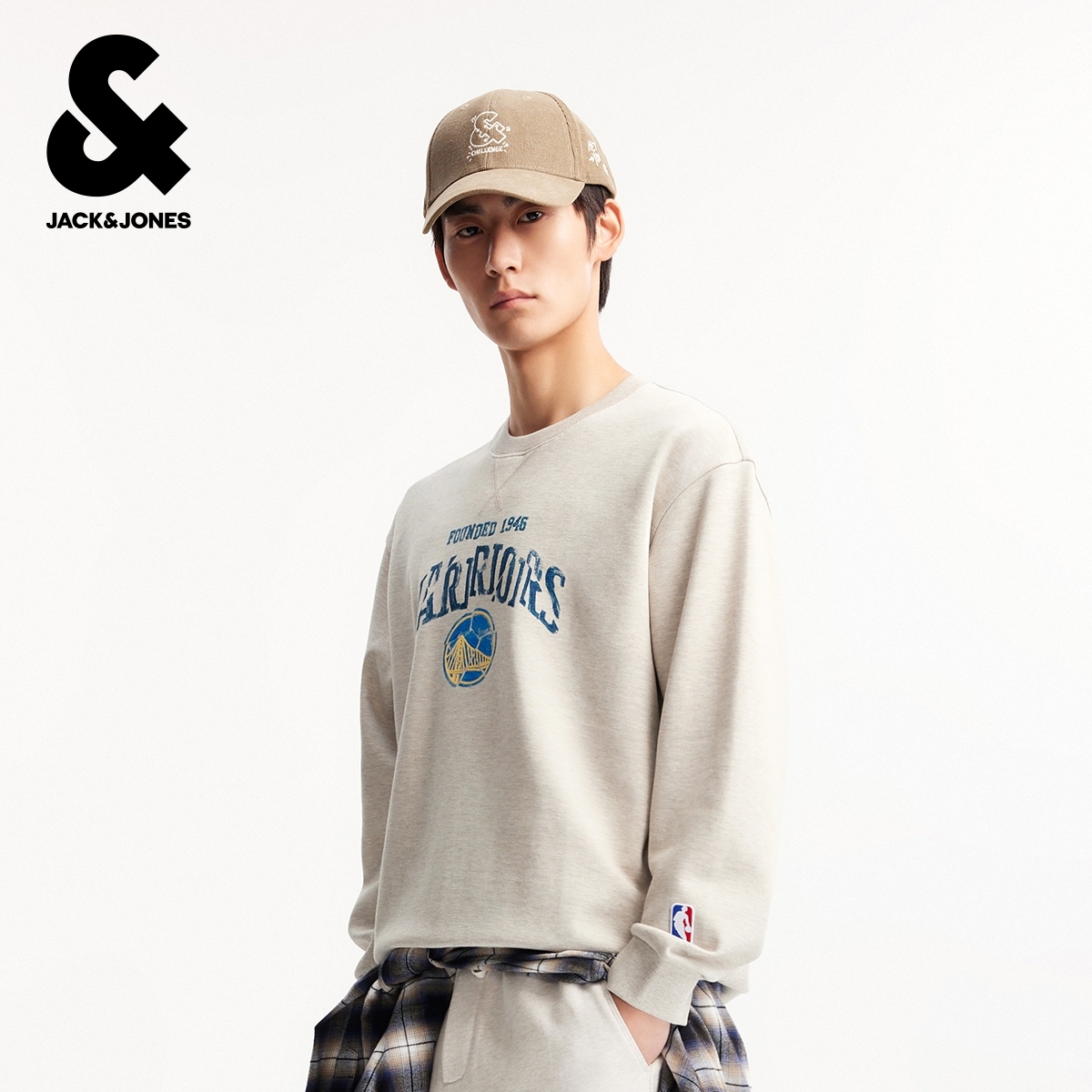 杰克琼斯春季圆领卫衣男装宽松NBA联名勇士队图案印花刺绣上衣