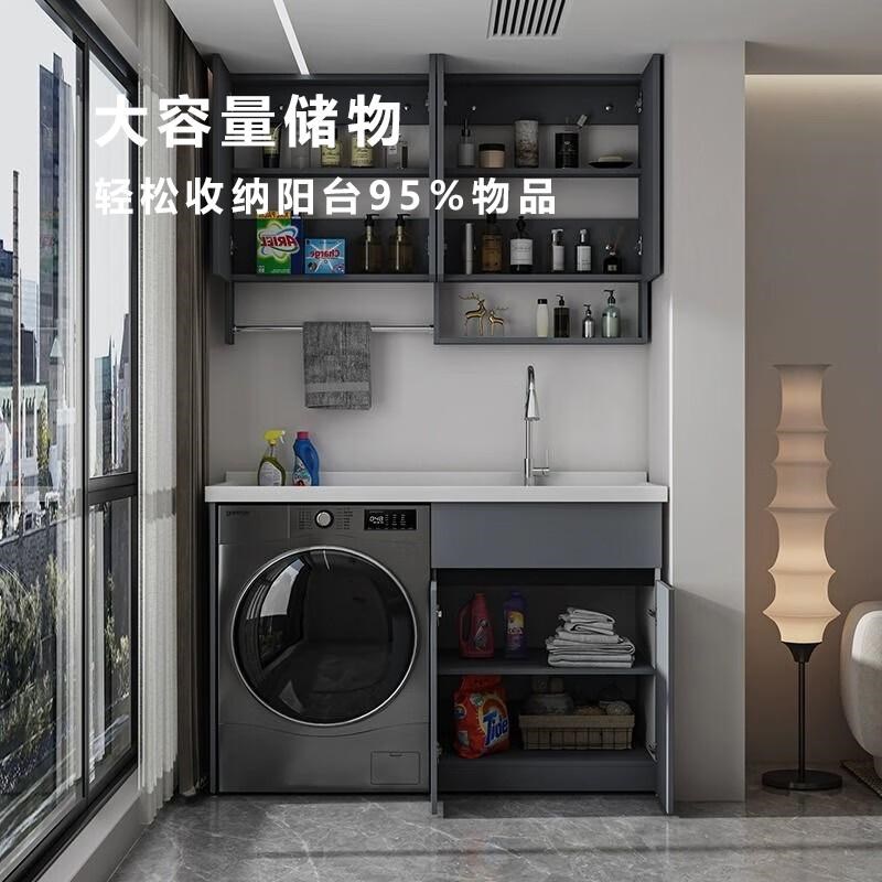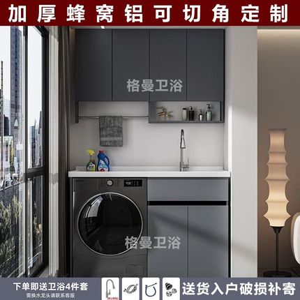 蜂窝铝洗衣柜带搓板阳台洗衣机洗手台H盆洗手槽一体柜组合切角定