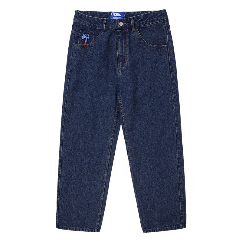 MindError ME 口袋小象城市刺绣宽松街头运动休闲牛仔情侣长裤潮
