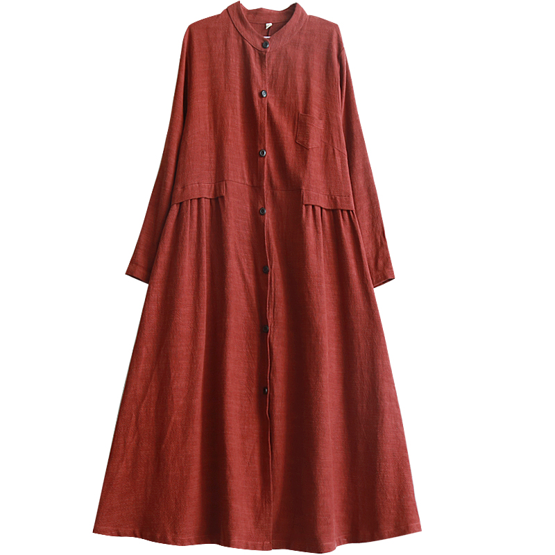 复古文艺亚麻女式风衣外套秋季长款气质外搭开衫麻料纯色百搭大衣