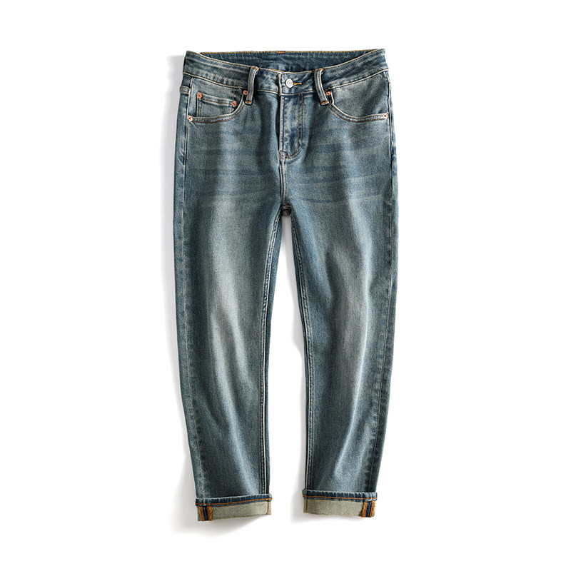 秋冬牛仔裤男士九分弹性微宽松小直筒复古简约百搭9分长裤2种选择
