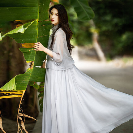 棉麻记春秋季吊带连衣裙女内搭长款2025新款雪纺小衫气质裙两件套