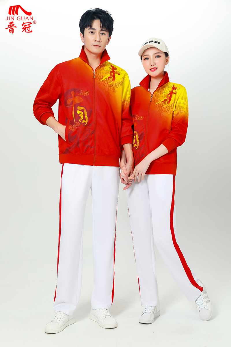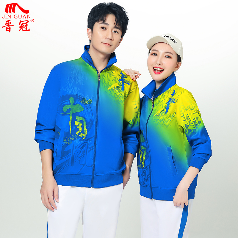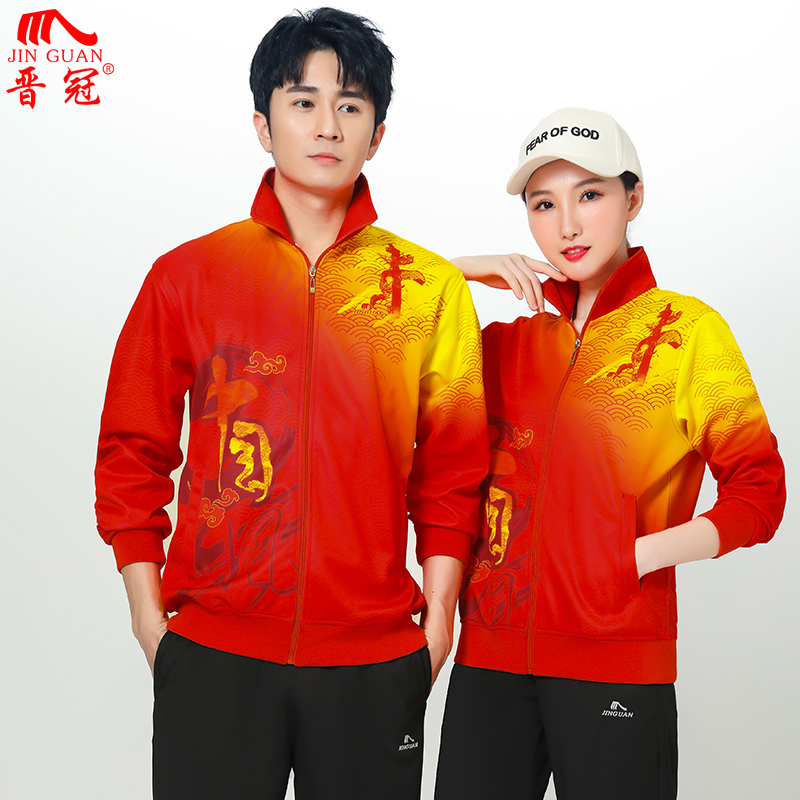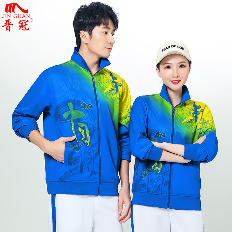 晋冠中国风新款春秋长袖运动套装男佳木斯广场舞三件套女团体服装