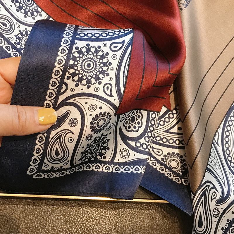 酒红拼腰果65cm真丝方巾女春秋长领巾装饰丝巾100%桑蚕丝百搭围巾
