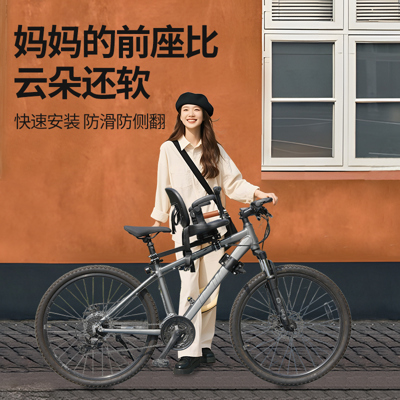 山地自行车儿童座椅前置可旋转折叠单车宝宝亲子骑行安全防摔坐凳