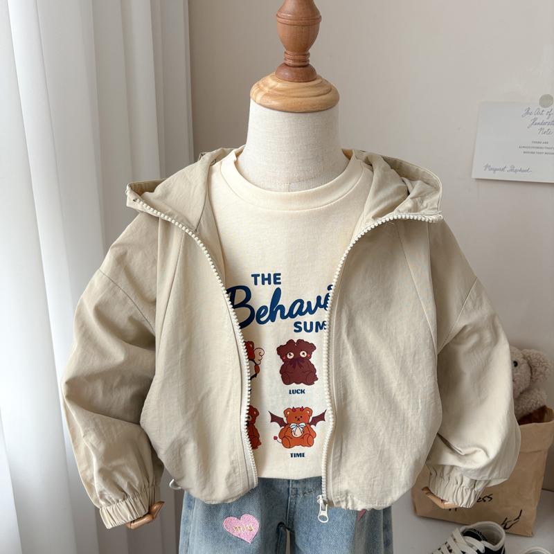 女童外套春秋2025新款儿童连帽衫宽松薄款休闲纯色男女宝春装上衣