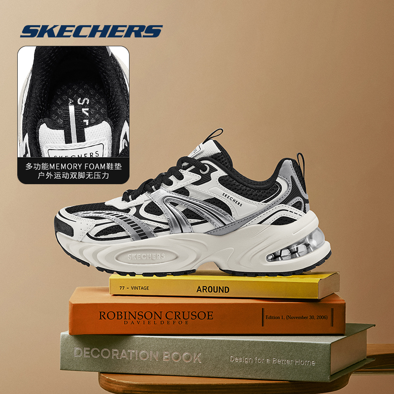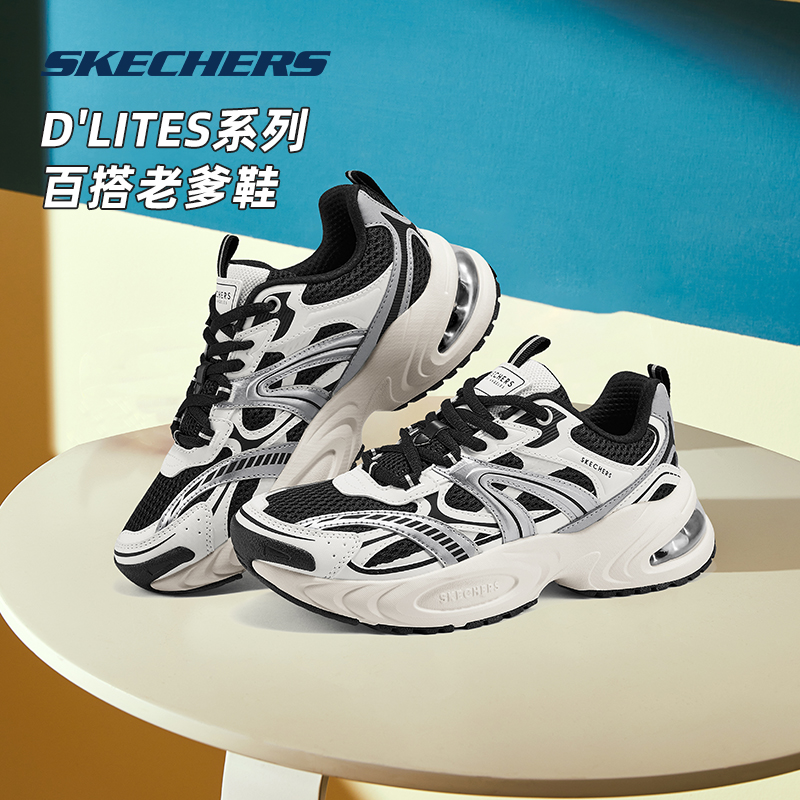斯凯奇25新款老爹鞋女鞋气垫熊猫鞋缓震透气厚底增高运动休闲鞋男