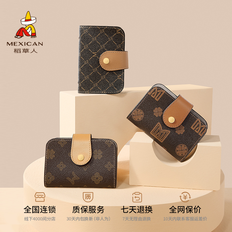 稻草人卡包女式2025新款多功能证件包复古老花银行卡包多卡位卡套