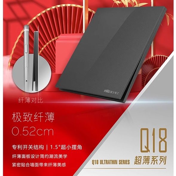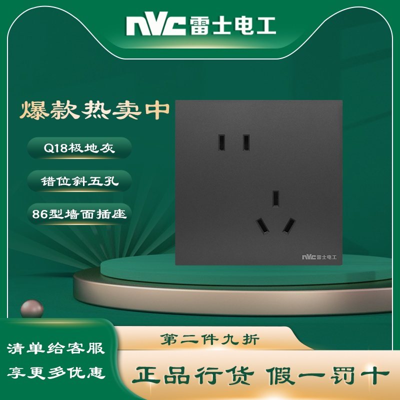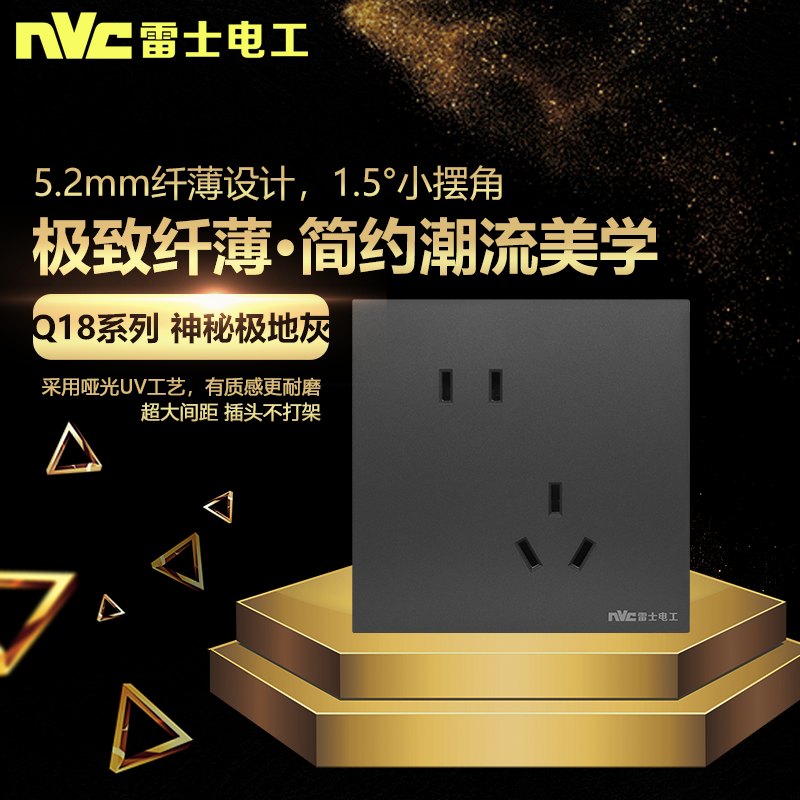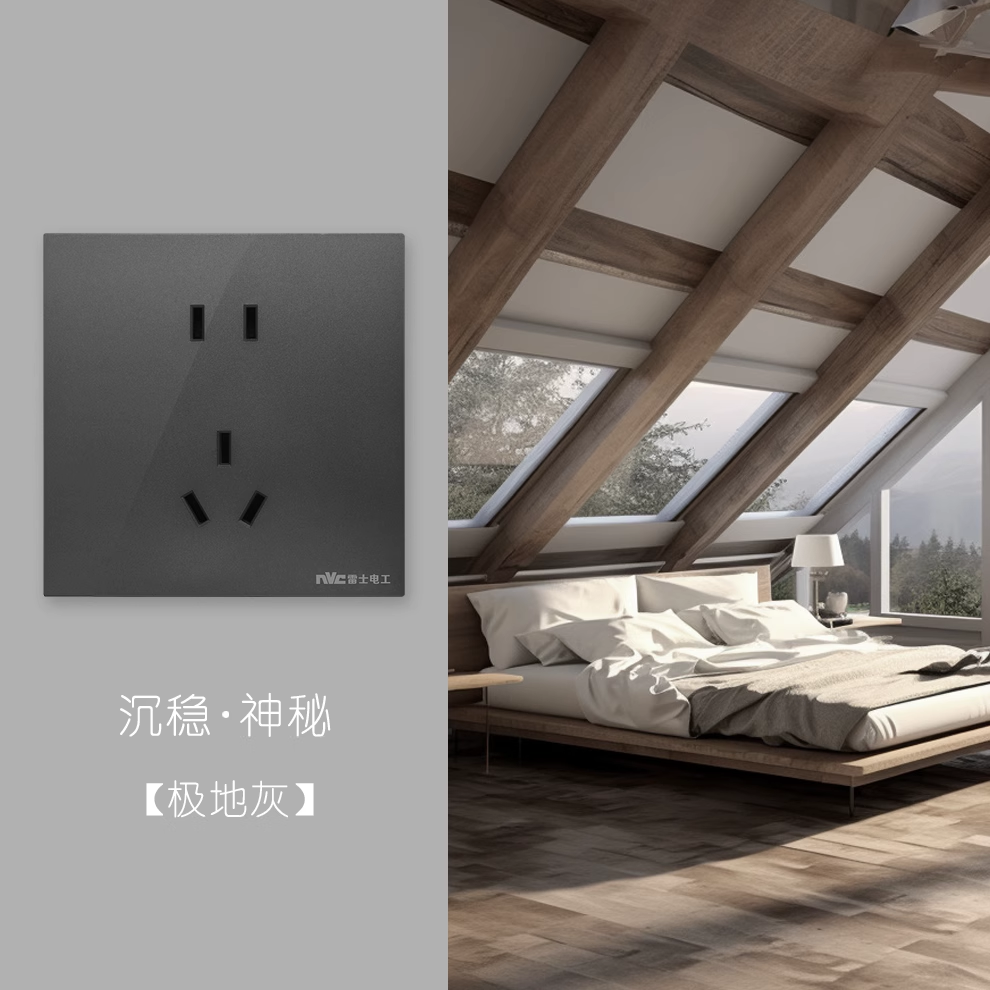 NVC雷士电工Q18极地灰开关插座超薄单双控嵌入式墙壁86型开关面板