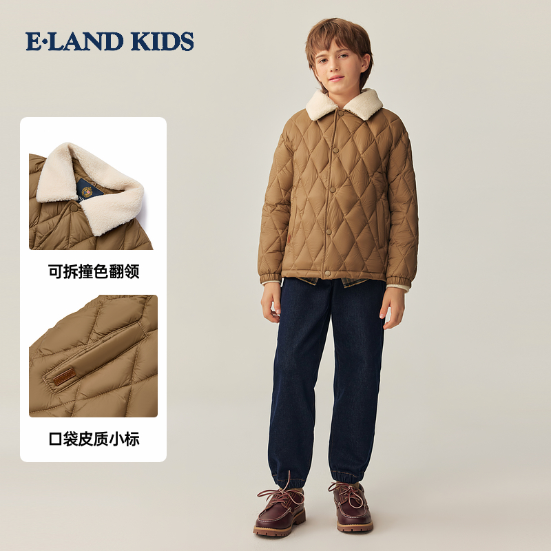 eland kids衣恋童装男童棉服2025年冬新品复古休闲翻领夹棉外套