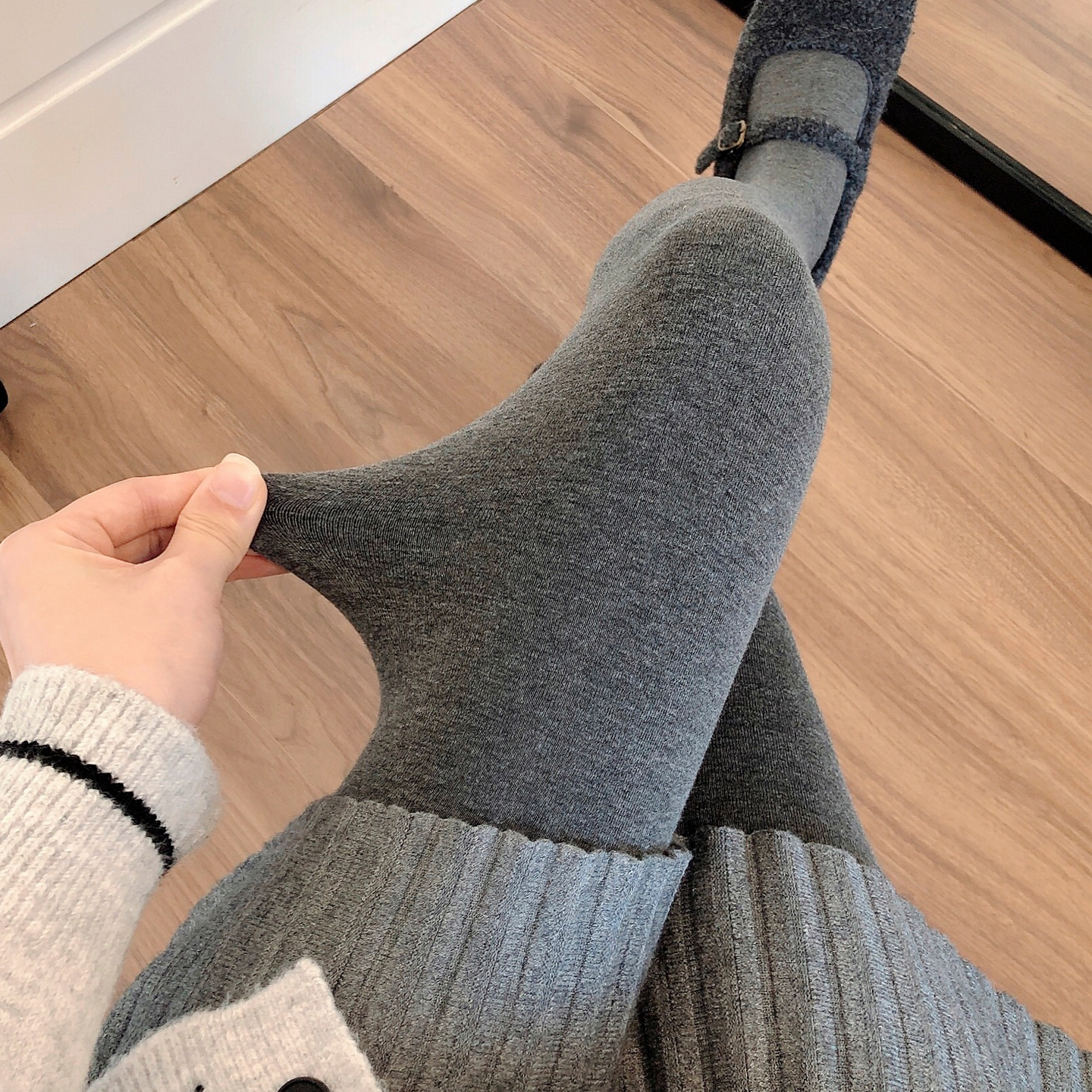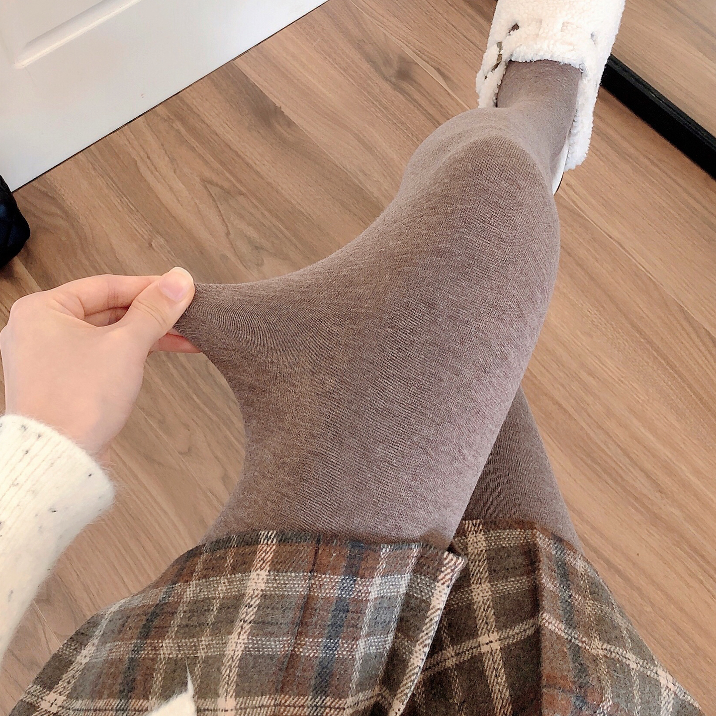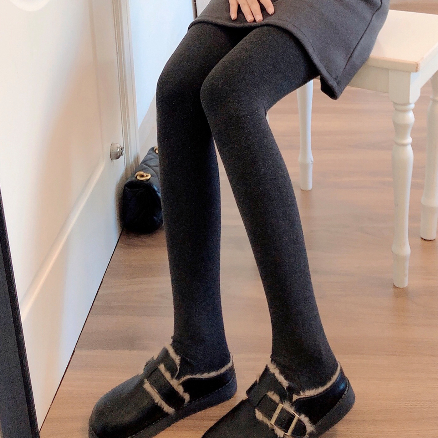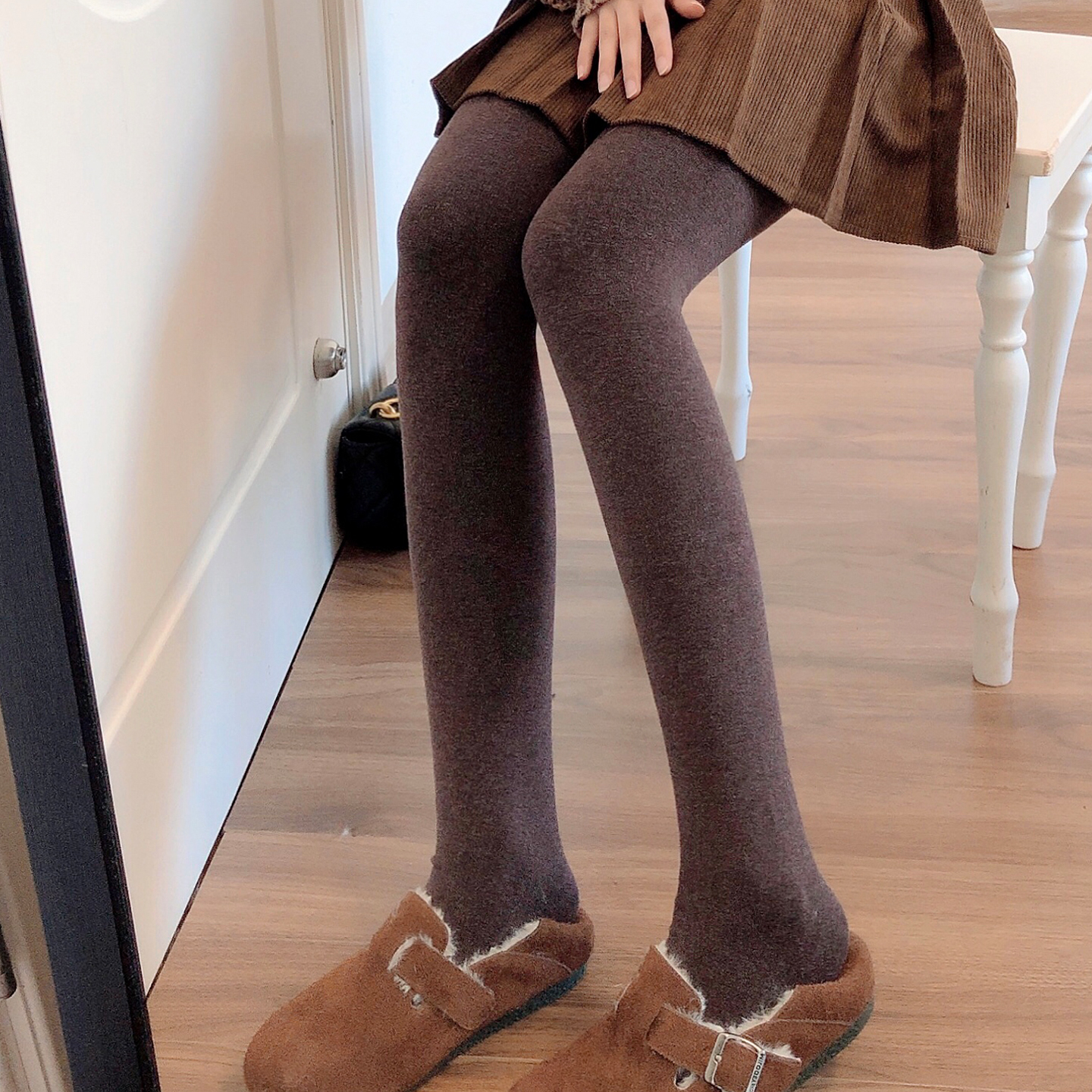 复古咖啡色连裤袜秋冬季加厚加绒烟灰色打底裤袜女外穿保暖踩脚袜
