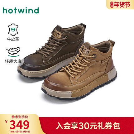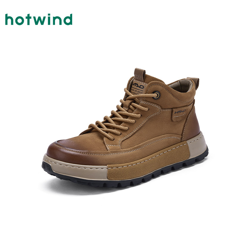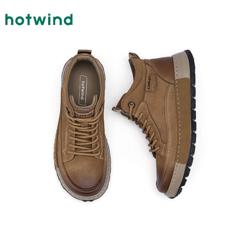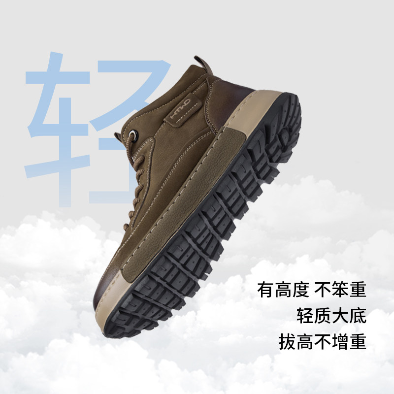 热风男鞋2025年秋季新款男士休闲复古高帮鞋棕色百搭运动跑步鞋