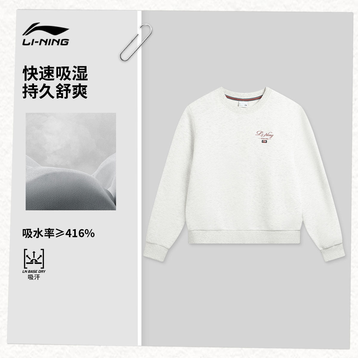 李宁网球卫衣女春季2026新款圆领宽松女装上衣休闲长袖针织运动服