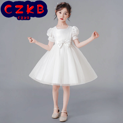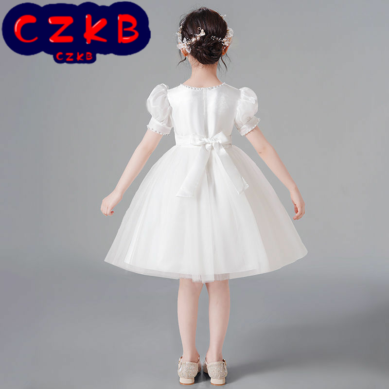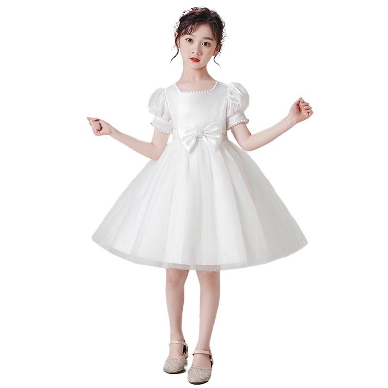 女孩晚礼服高贵白色婚纱公主裙儿童走秀钢琴演出服生日蓬蓬礼服裙