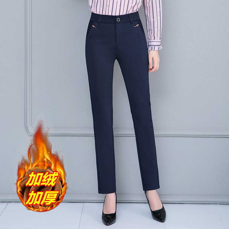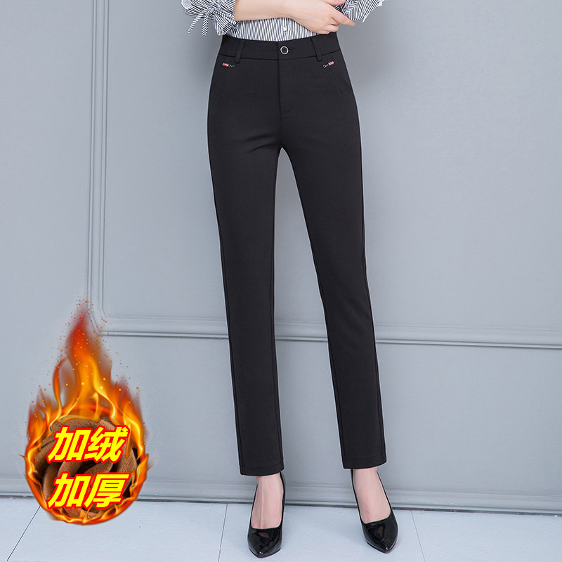 中年女裤外穿高腰大码宽松加绒加厚中老年妈妈黑色直筒休闲长裤子