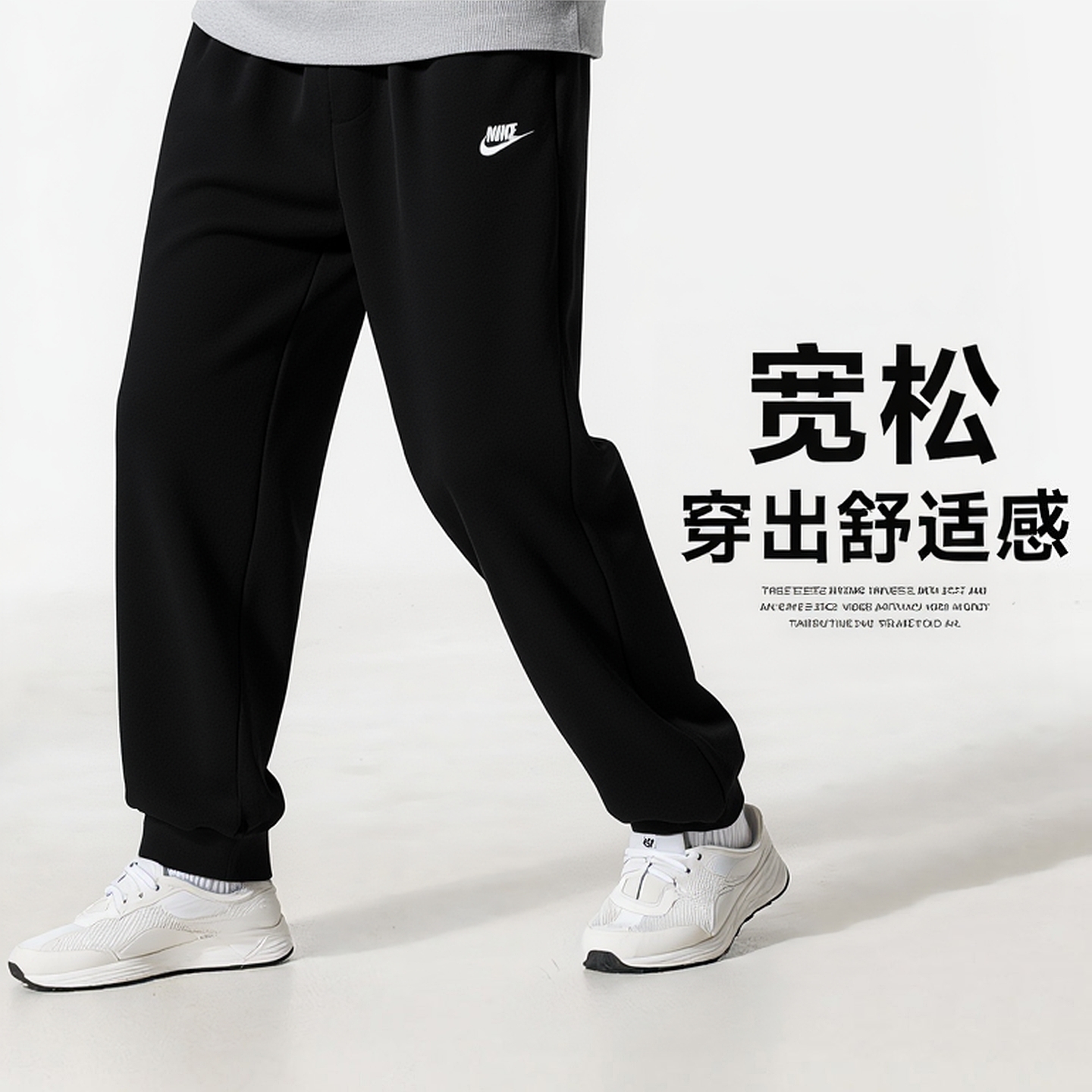 耐克裤子男款秋冬灰色卫裤针织休闲长裤宽松束脚运动裤FN3788-010
